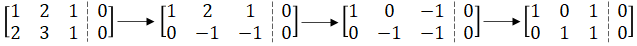 $$\begin{bmatrix} 1 & 2 & 1\\ 2 & 3 & 1\end{bmatrix} \begin{bmatrix} x_1 \\ x_2 \\ x_3 \end{bmatrix} = \begin{bmatrix} 0 \\ 0 \end{bmatrix}$$
